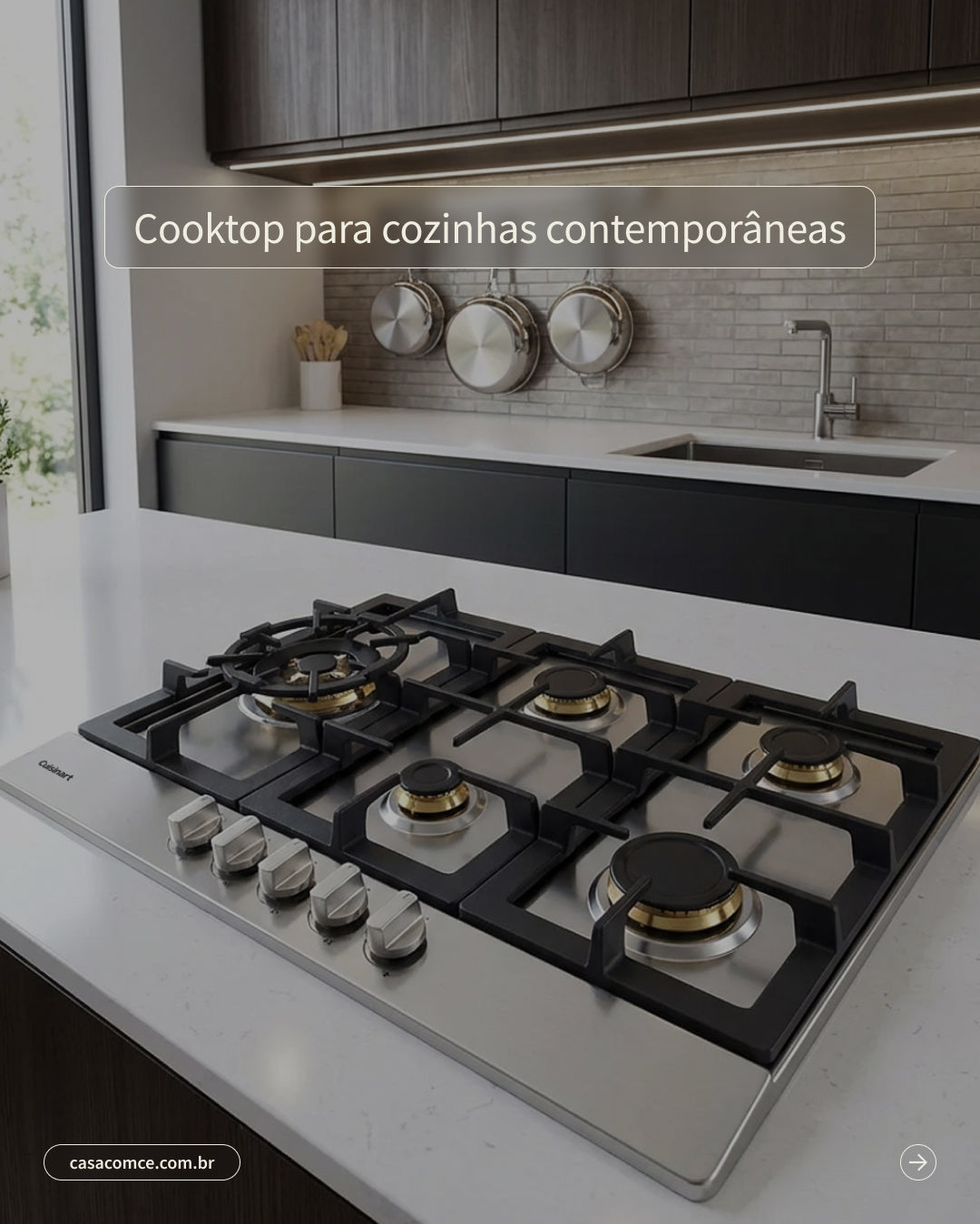 Transforme sua cozinha com o Cooktop à Gás Cuisinart 5 Bocas Inox 75cm! Com 5 queimadores a gás, incluindo um potente tripla-chama lateral. Design elegante em...