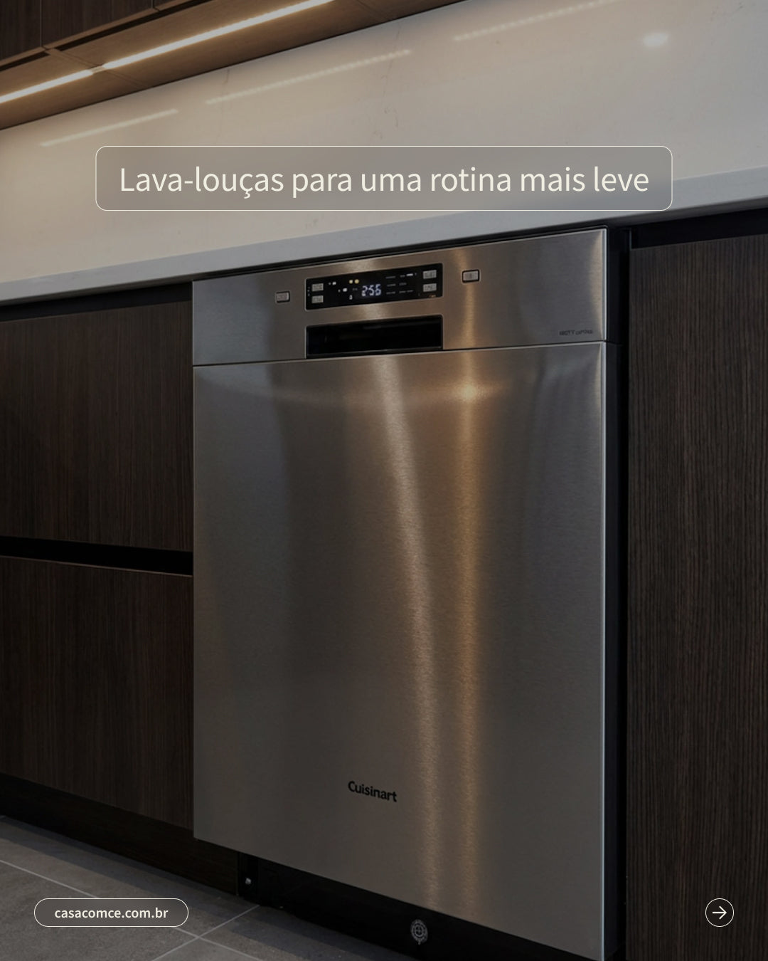 Lava-Louças Cuisinart Eficiência e design em sua cozinha com a Lava-Louças Prime Cooking Cuisinart!Capacidade para 14 serviços e design em aço inox. 7 programas de lavagem:...
