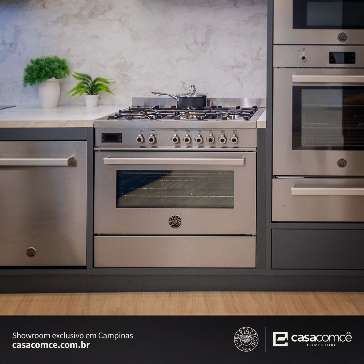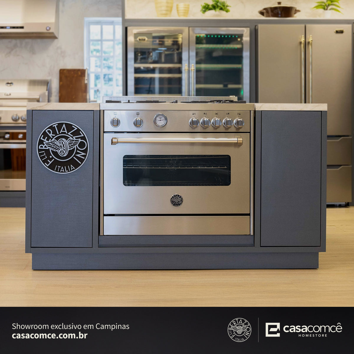"Mais do que ver fotos, nosso showroom permite que você experiencie a Bertazzoni. Toque nos materiais nobres, abra os fornos espaçosos, sinta a robustez inconfundível dos fogões das linhas Master, Professional e Heritage. Como especialistas na marca há 17 anos, nossa consultoria garante que sua visita se traduza na escolha perfeita e no investimento mais seguro para sua cozinha gourmet Bertazzoni."