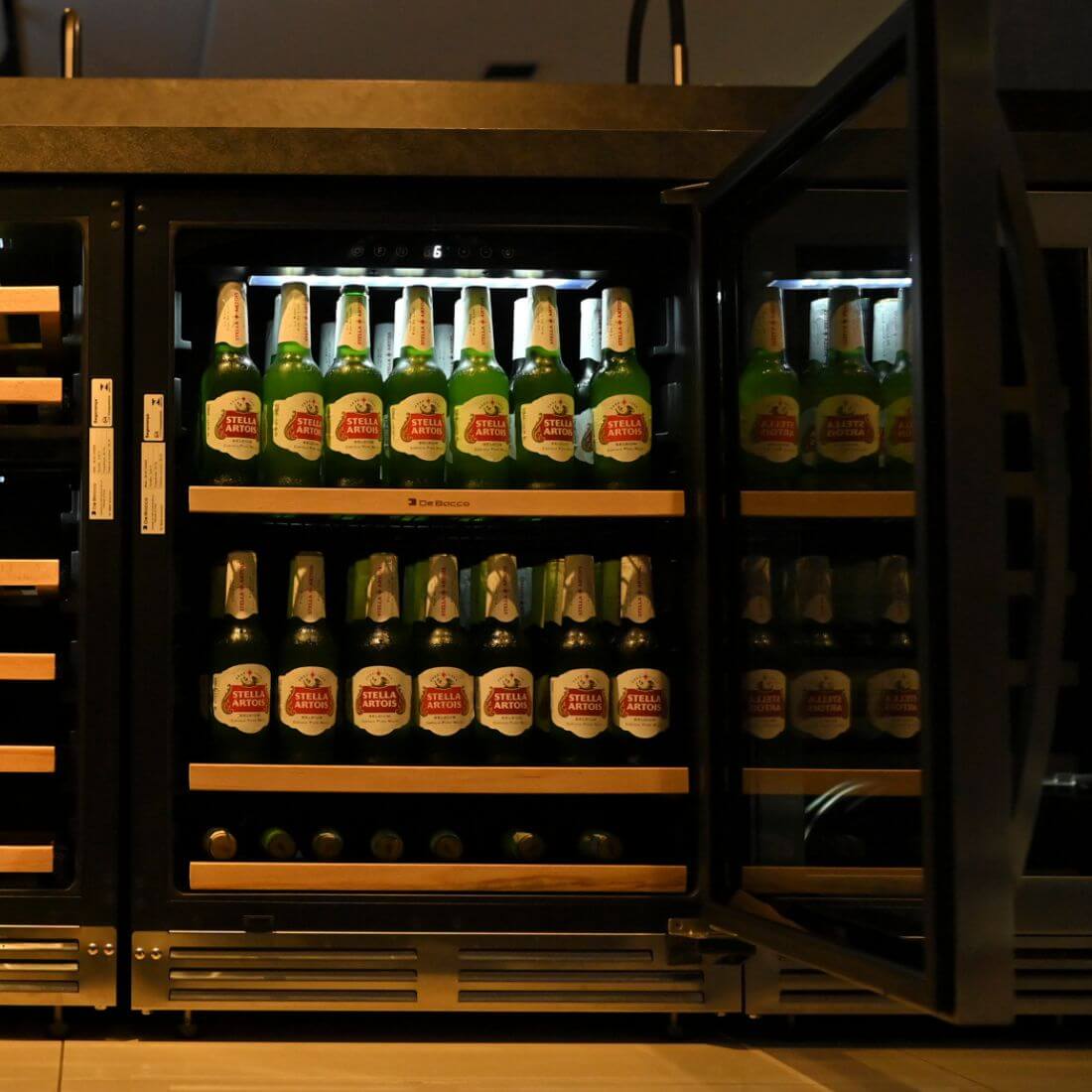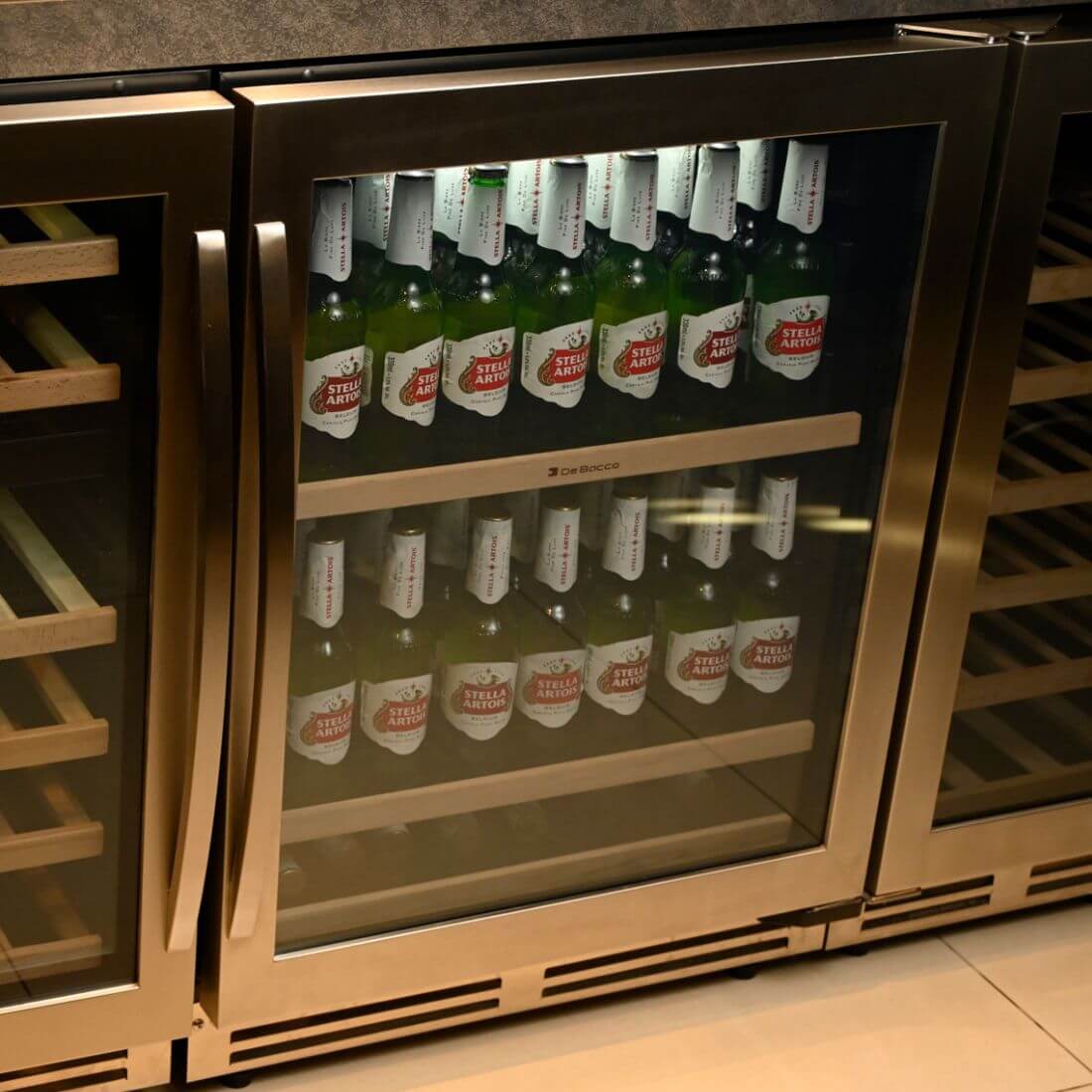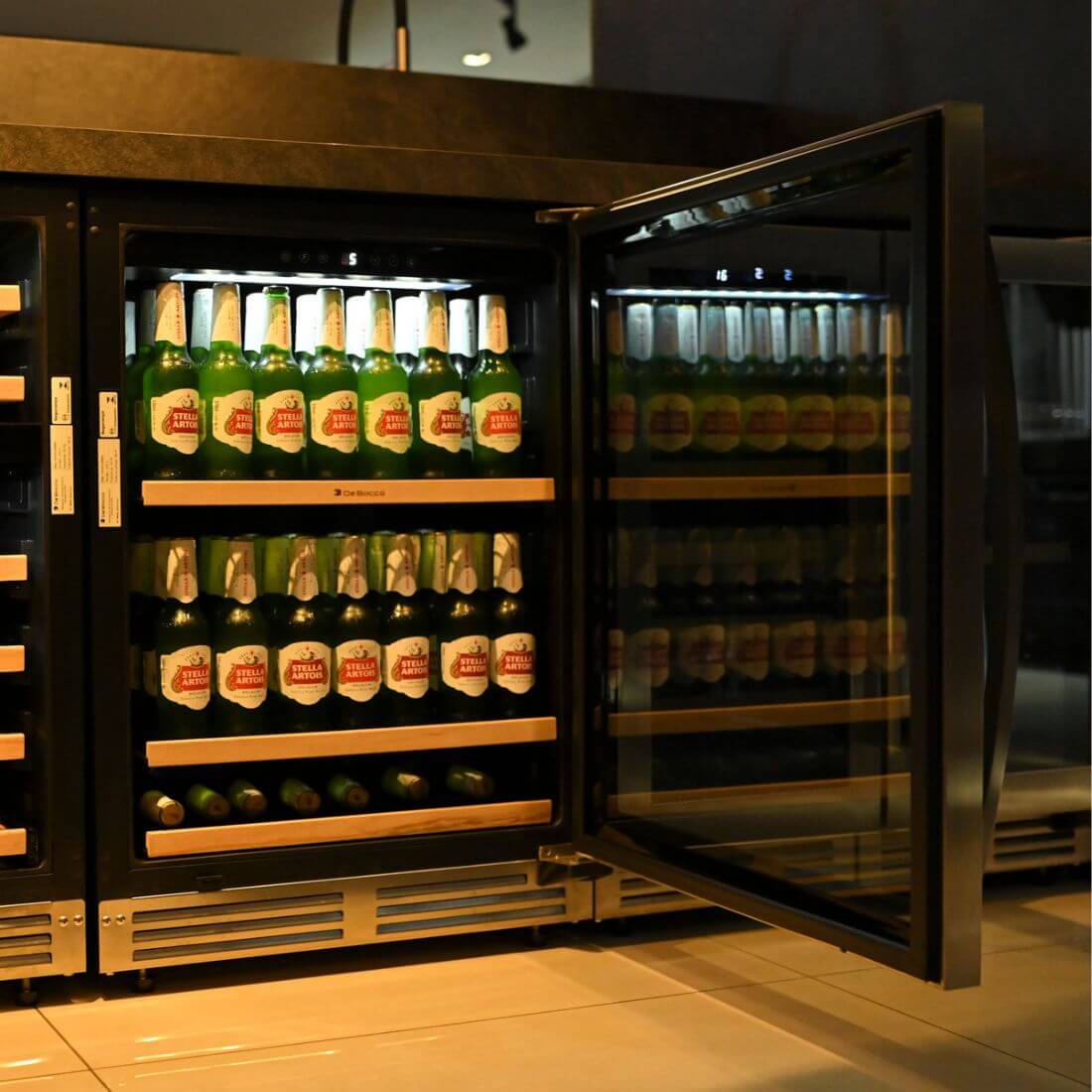 Cervejeira Debacco: Com grande capacidade interna esta cervejeira foi projetada para diversos tamanhos e formatos de latas e garrafas. Confeccionada com requinte nos detalhes, e um design que remete aos equipamentos profissionais.