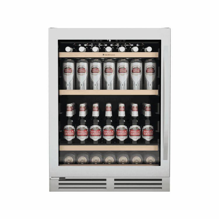 Para quem busca comprar uma cervejeira de embutir, o modelo de 145 litros da Debacco é a solução ideal. Com capacidade de gelar até -9°C e a função Modo Festa, ela garante que suas cervejas e outras bebidas estejam sempre prontas para servir. Seu design profissional em aço inox 304 e os detalhes em madeira nas prateleiras a tornam a peça de destaque em qualquer projeto.