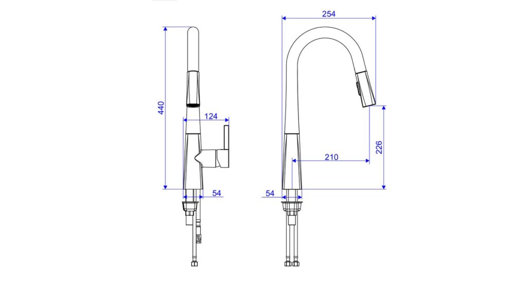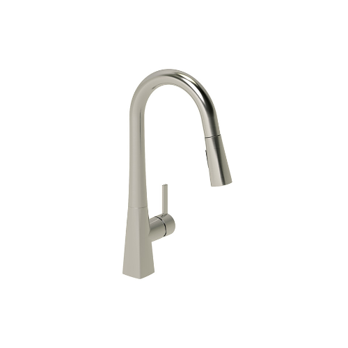 Misturador monocomando robusto com traços sutis, com ducha retrátil e dois tipos de jato.