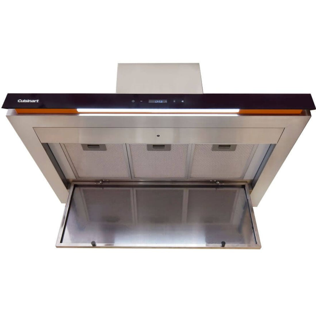 - Coifa de Parede Cuisinart Arkton com tecnologia de aspiração perimetral para instalar na função exaustão ou depuração