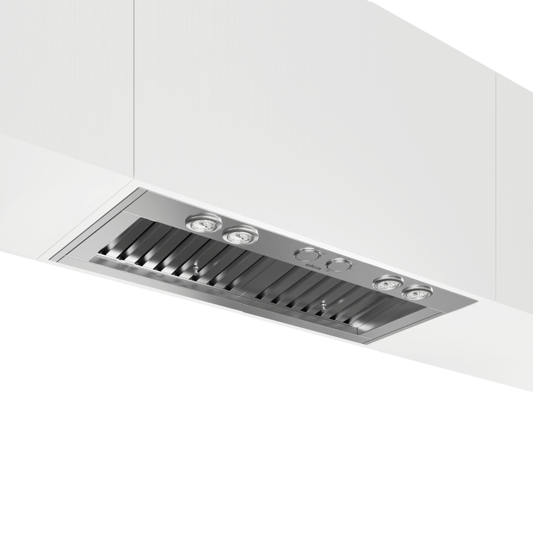 Eleve o nível da sua cozinha com esta coifa embutida de design profissional em robusto aço inox escovado.