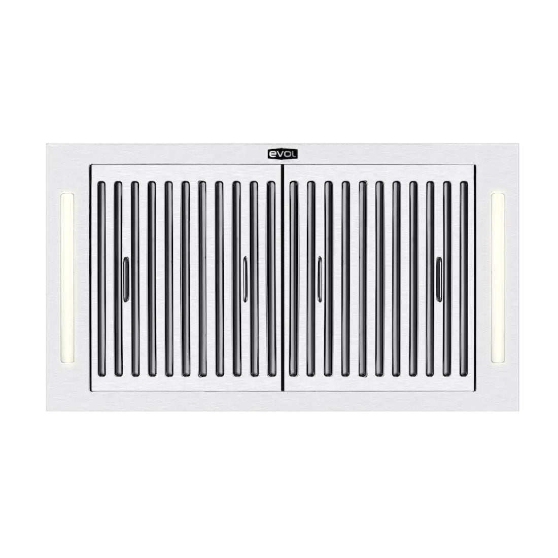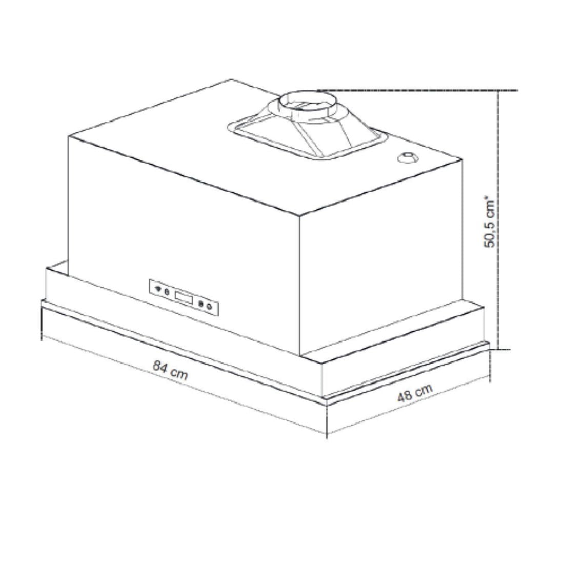 - Exaustor com 84 cm de largura produzido em aço inox 304 para instalar no modulado aéreo. Modelo híbrido: Indicado para uso nas churrasqueiras a gás, fogões profissionais, cooktops, rangetops de alta performance em ambientes integrados e cozinhas