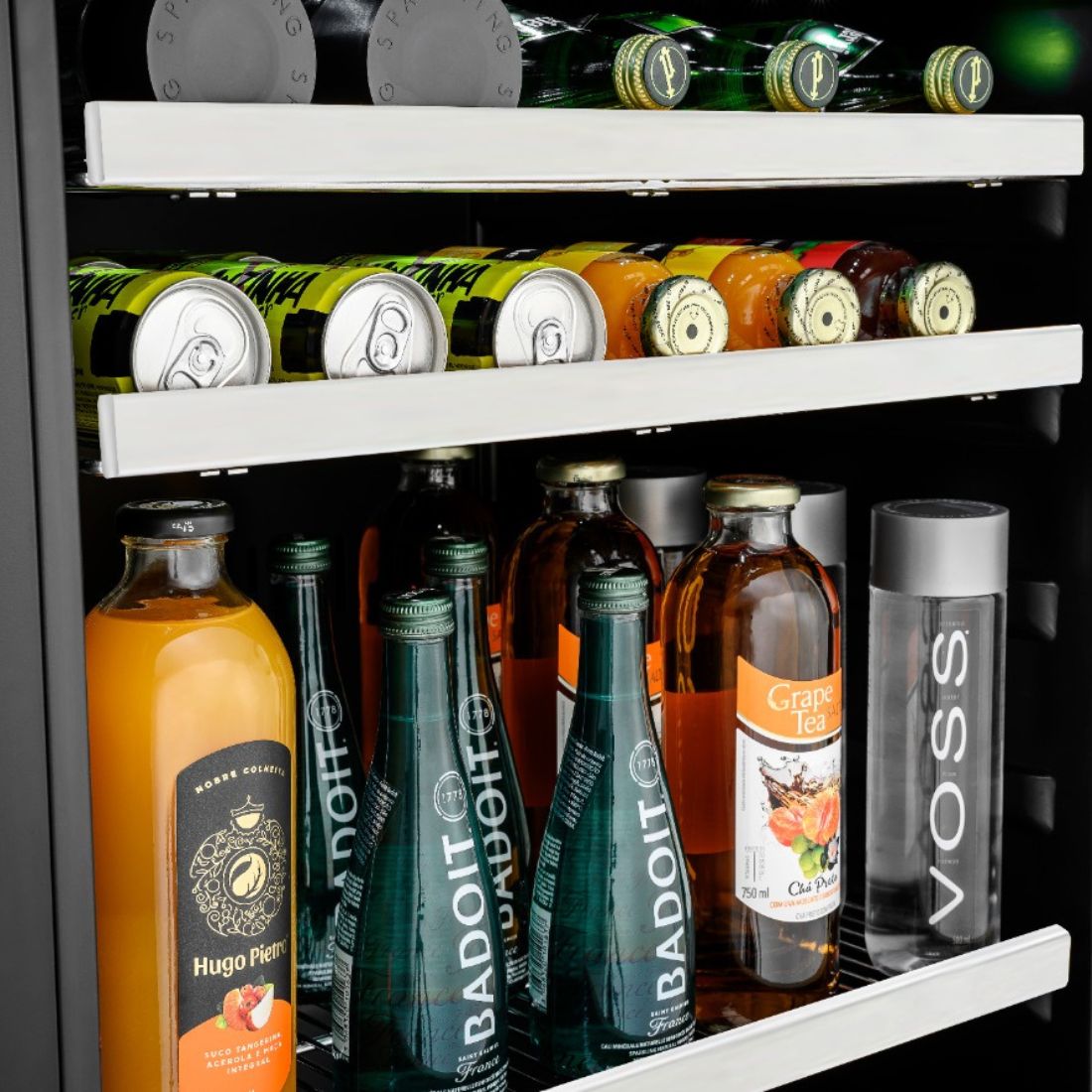 - LEDs na parte superior interna criam uma iluminação uniforme das bebidas sem gerar calor, acionada automaticamente ao se abrir a porta.