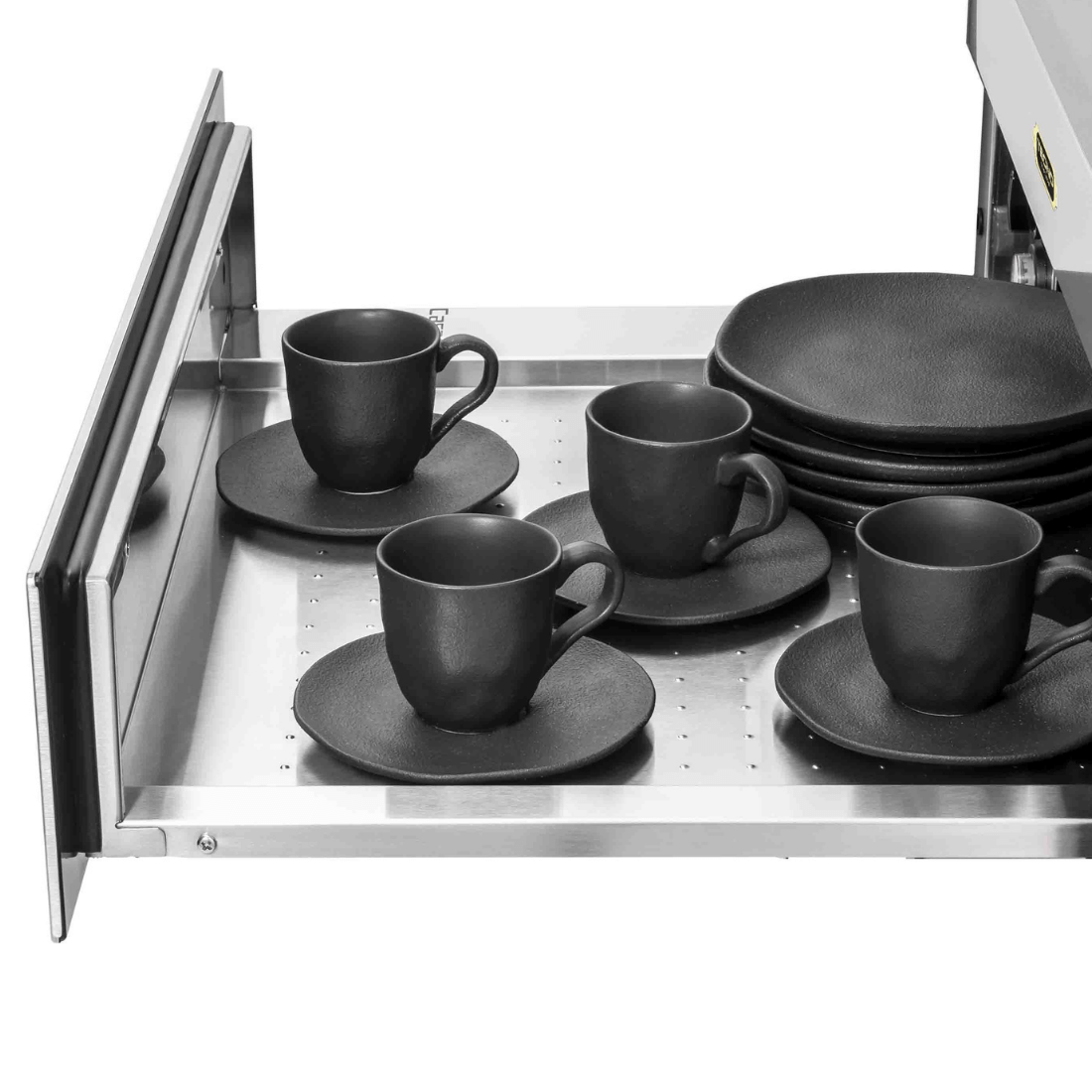 A Gaveta Aquecida Tecno Vintage mantem aquecidos de forma rápida e homogênea todos os tipos de alimentos e utensílios!