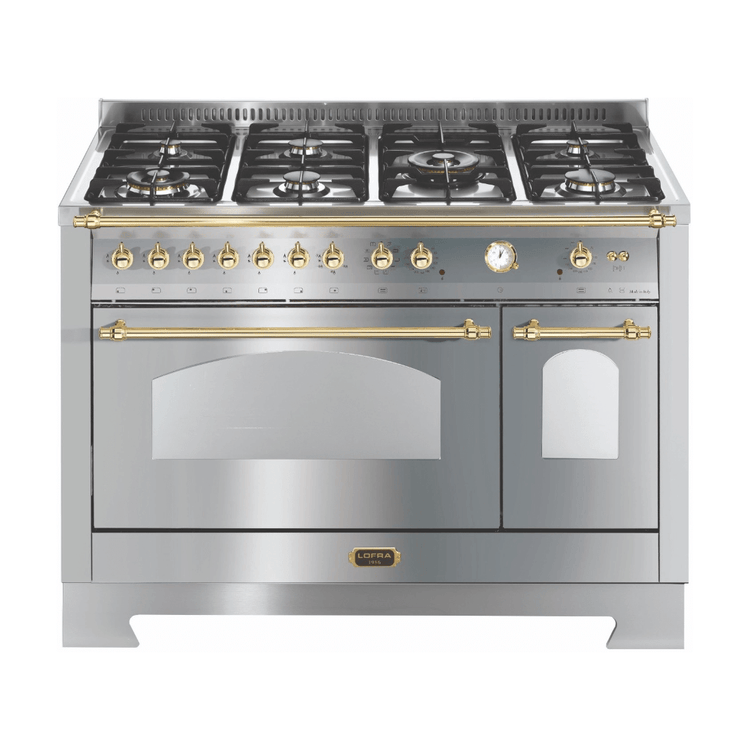 Fogão Lofra Dolcevita Inox 120cm em inox escovado de piso e de embutir, 7 queimadores a gás com acendimento super automático e sistema de segurança Gas-Stop.
